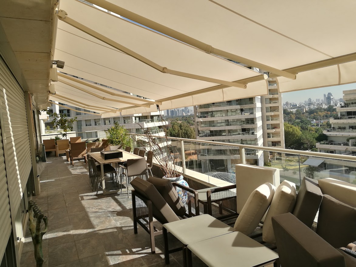 סוכך זרועות הנו הסוכך המתאים ביותר לכיסוי והצללה של מרפסות , גינות ודירות גג, גם בשל טווח כיסוי רחב לכל זווית של שמש.